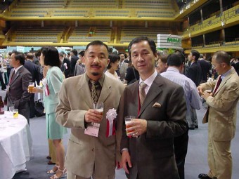 過去最大規模の参加者、素晴らしい懇親の場を提供できました。中央は特別講演の下條先生と筆者。