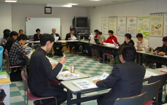 面積にゆとりのあるポスター会場における熱心な討議風景