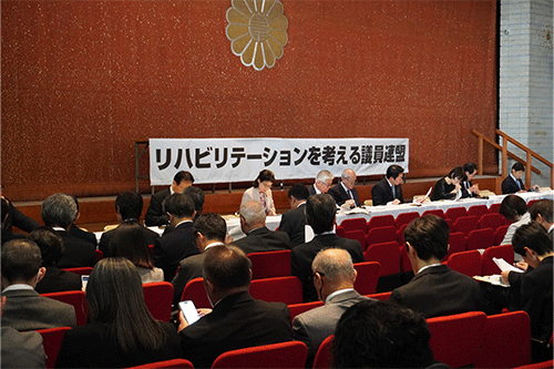 今開会の挨拶では、鈴木俊一リハ議連会長より、「リハビリテーションに大きく関わる3療法士の役割は重要であり、議連としてサポートしたい。」との発言があり、加えて「補正予算、来年度予算が決まる中で、様々な施策の実現に向けて協議したい。」と挨拶されました。